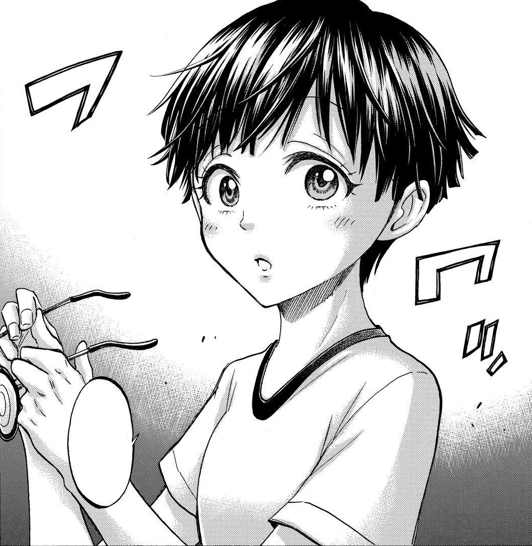 The Class 3-A President is a petite girl shorter than Aiko, with blue hair in a bowl-cut style. She wears circle framed glasses with circles on them similar to Kiku Sonoyama, covering her red eyes. During first year she wore square framed glasses with squares on them. Ryu notes that she looks pretty without her glasses.