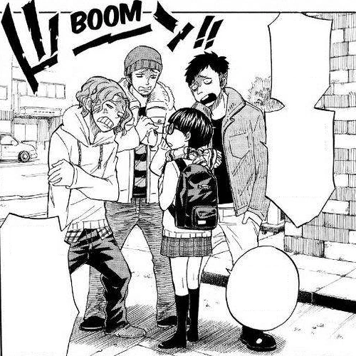 After getting her future told, being a pop quiz the next day, by Aiko she thanks her as she leaves the clubroom walking away.[3] After school ends, she walks home unaware that she is being followed by Aiko. She soon bumps into three delinquents, who informs her to watch where she's going and to apologize. They then notice The Masked JK, who attempts to stop the delinquents. She watches as she fights them, but soon begins to lose before The Masked DK comes and helps her. After the commotion is over, she walks away thinking to herself that it's better if she doesn't get involved with weird people.[4]